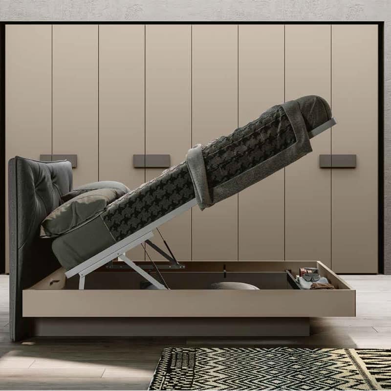 - Letto DIONE LAO16 contenitore da 160×190, Vison e tessuto Kinder Grigio scuro