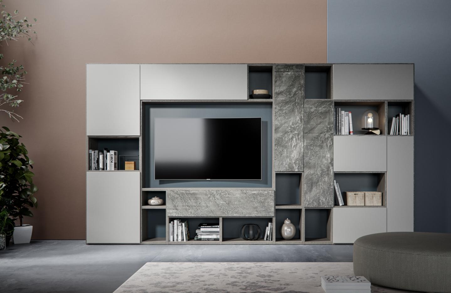 Diversi modi di interpretare la zona giorno abbinando superfici materiche a cromie di tendenza. Le composizioni si articolano in geometrie leggere invitando ad utilizzare lo spazio in modo libero e creativo.