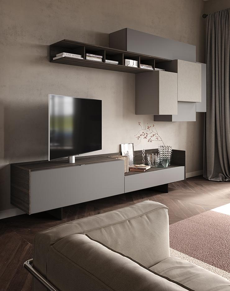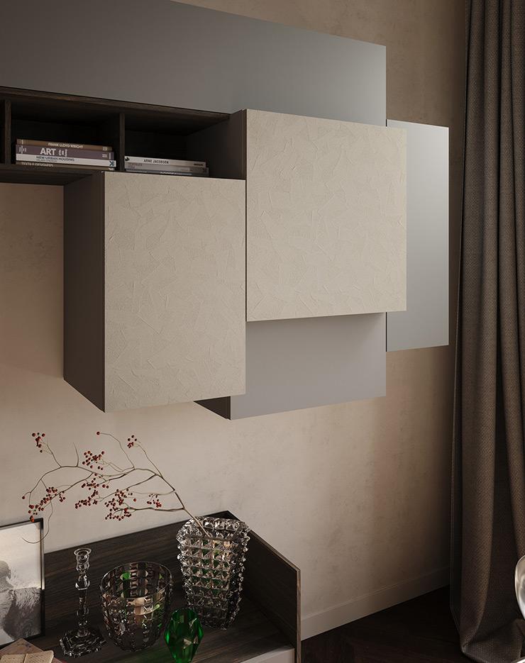 Diversi modi di interpretare la zona giorno abbinando superfici materiche a cromie di tendenza. Le composizioni si articolano in geometrie leggere invitando ad utilizzare lo spazio in modo libero e creativo.