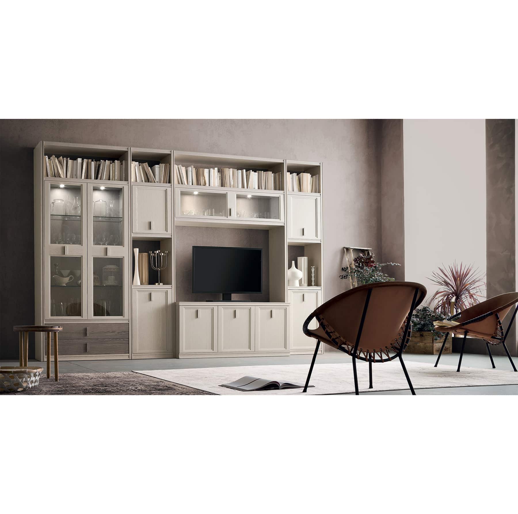 Le linee di Iris in un living perfettamente coordinato alla zona notte. Nasce un nuovo senso di casa, progettando spazi che dialogano in piena armonia.