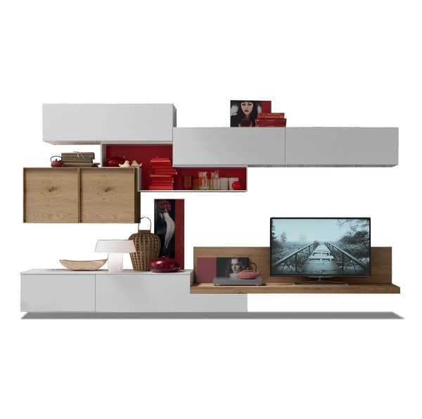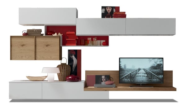 Stile e praticità nel mensolone porta tv. Forme sagomate aprono a nuove geometrie.