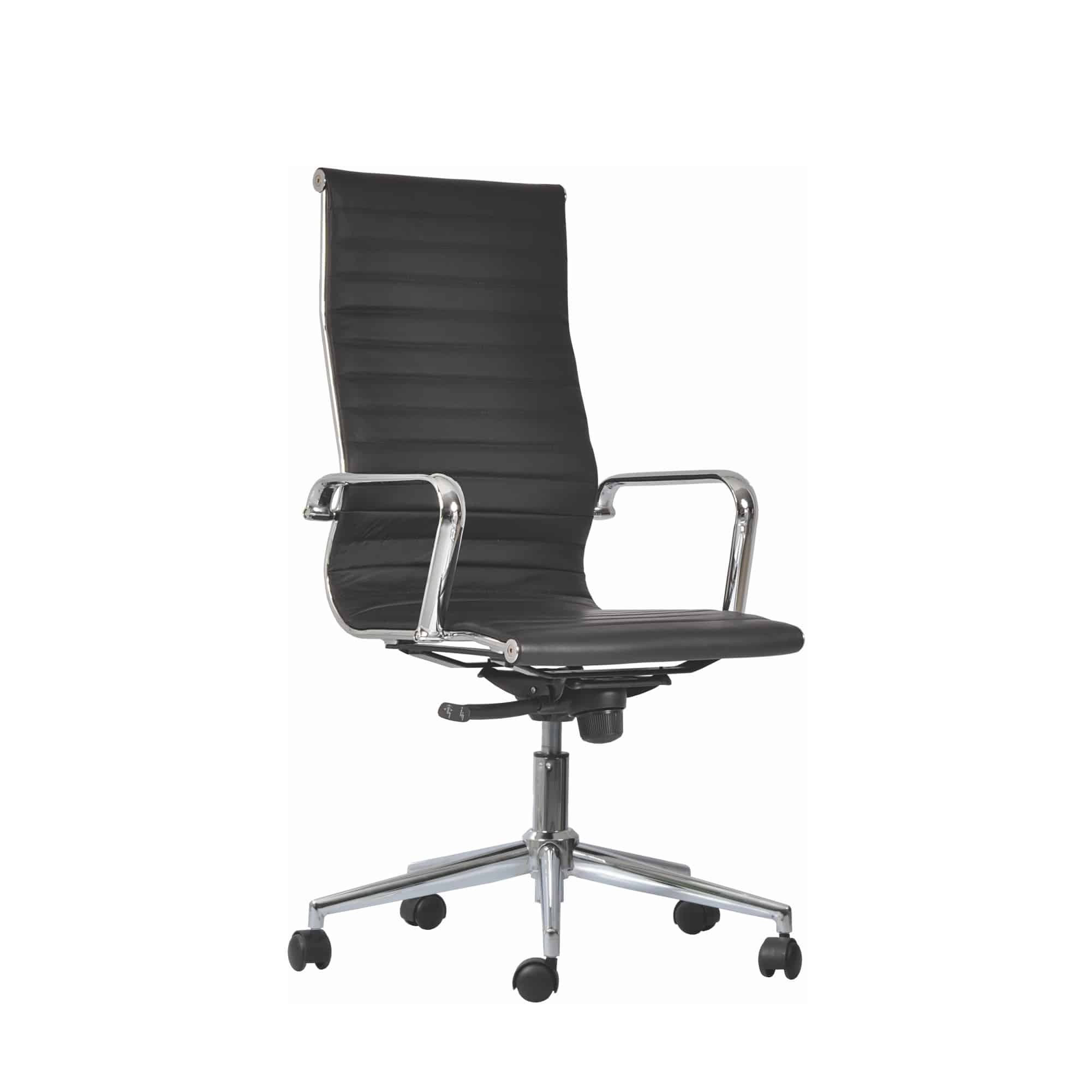 Linea direzionale con telaio e braccioli in acciaio cromato, imbottitura e rivestimento autoportanti di colore nero oppure bianco. Poltrona Direzionale con movimento oscillante ed alzata a gas, base a 5 razze in acciaio cromato – Poltrona Semi Direzionale con schienale basso e con movimento oscillante ed alzata a gas, base a 5 razze in acciaio cromato con ruote – Poltrona con schienale basso e con movimento oscillante ed alzata a gas, base a 5 razze in acciaio cromato con ruote – Sedia con base a slitta in acciaio cromato.
