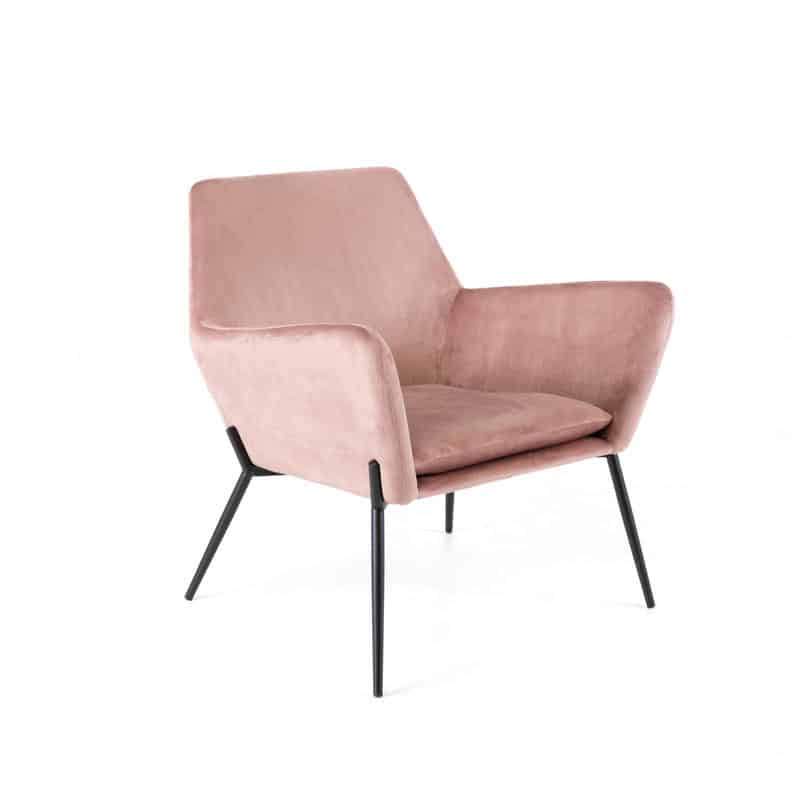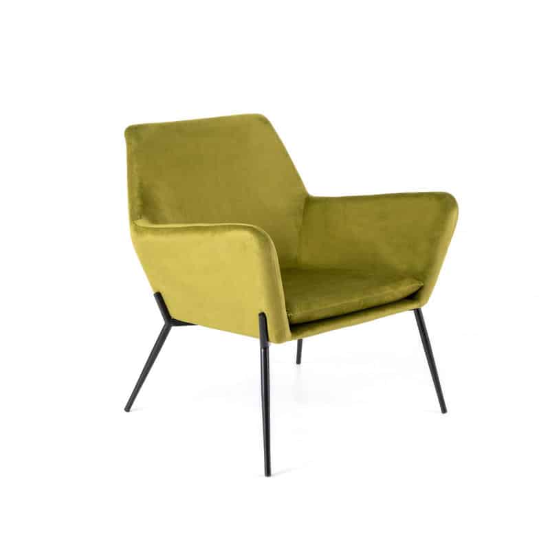 Poltrona in microfibra con struttura in metallo color ottone.
