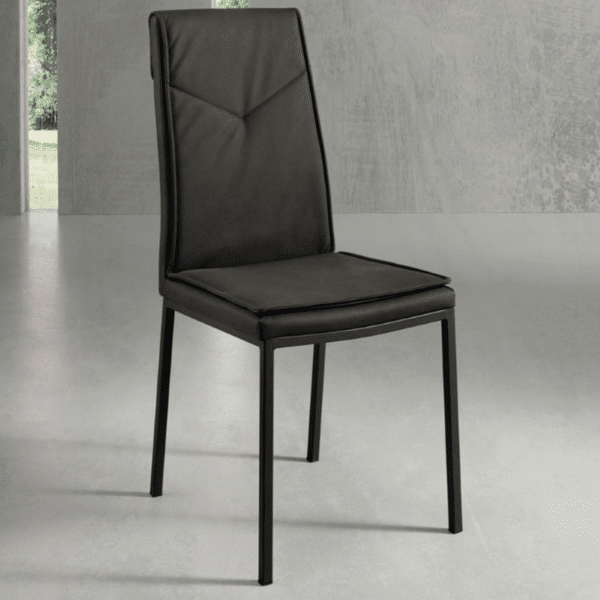Sedia in ecopelle martellata imbottita, con base in metallo verniciato.