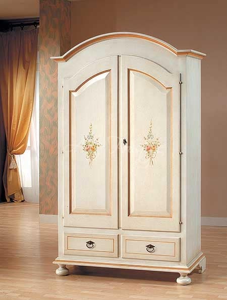Art 1312/A Armadio 2 ante ,2 cassetti faggio-massello bianco, decorato a mano.