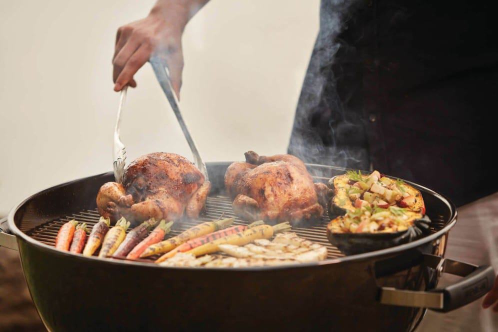 Barbecue a carbone nero con grill a gas e valvola di controllo, ideale per grigliate e cene all'aperto di alta qualità. Perfetta per cucinare carne, verdure e pesce anche in spazi esterni piccoli e grandi.