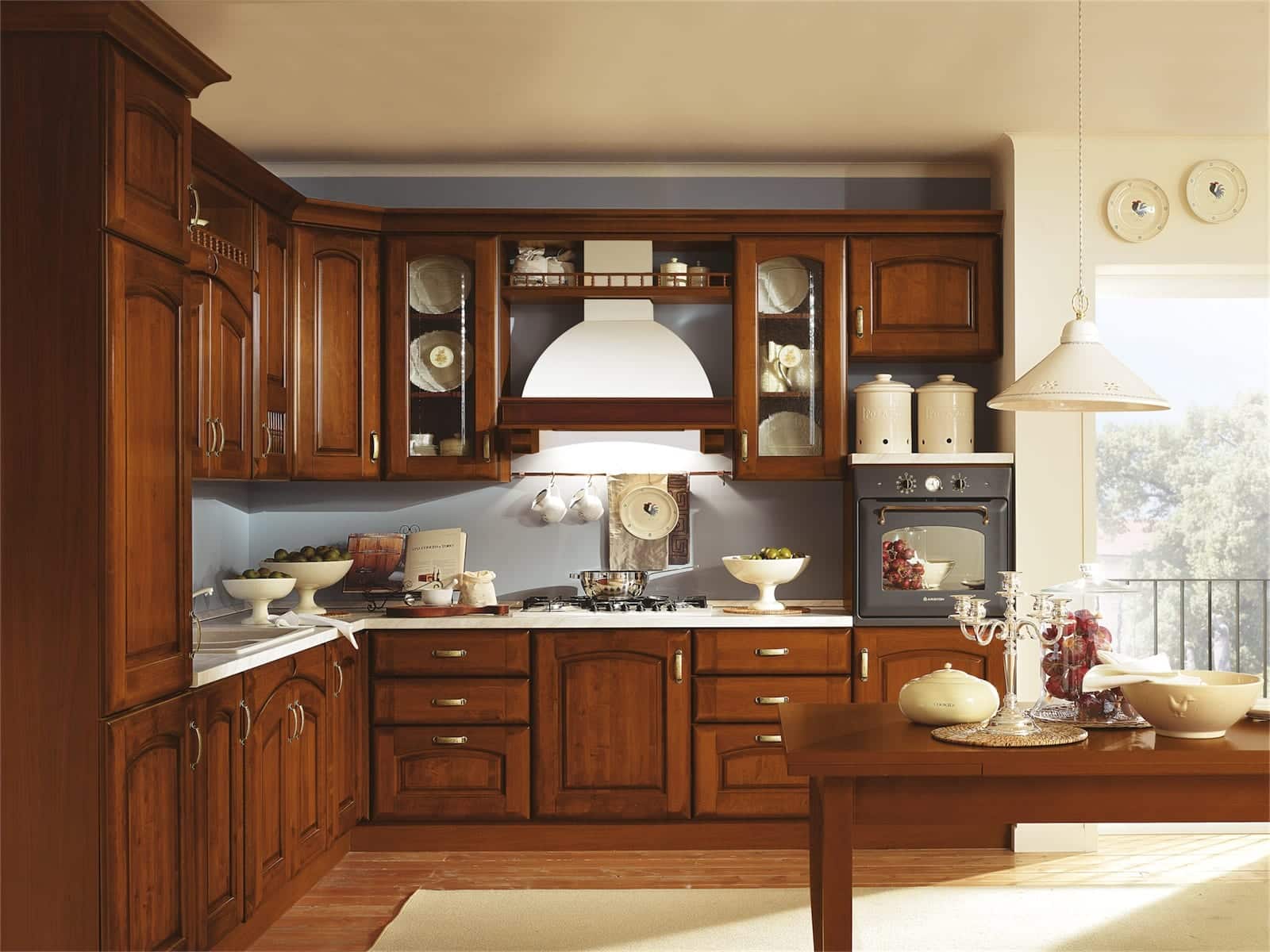 L’elegante essenza del noce seduce gli ammiratori della cucina in stile classico. Dal sapore classico, si pregia di molteplici elementi di stile, funzionalità e valore estetico.