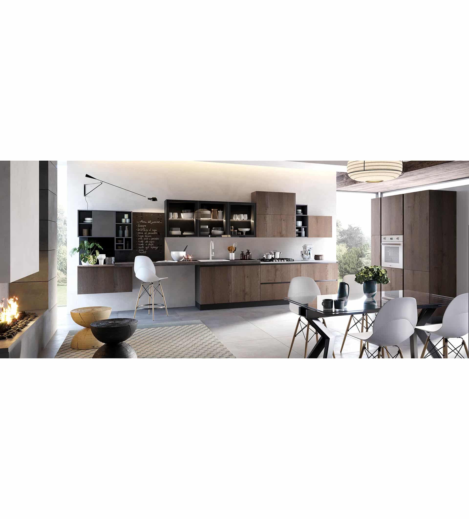 Non manca certo di forza, la cucina Nala caratterizzata da un’anta robusta, impiallacciata in legno di rovere su ben due lati.