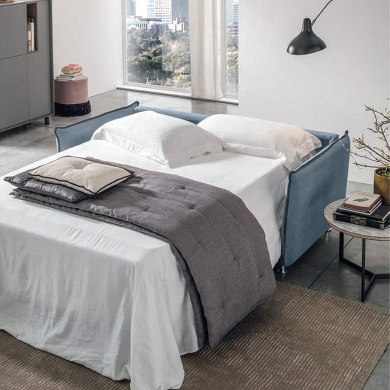 Meccanismo: divano-letto trasformabile con rete elettrosaldata con cinghie elastiche in corrispondenza della seduta.