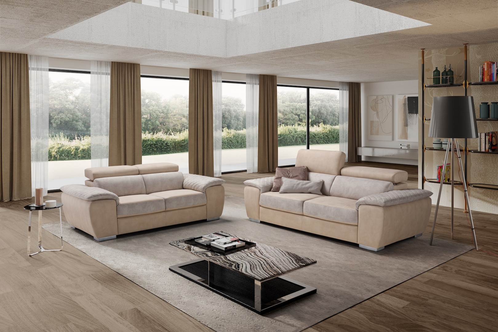 Modello dal design inconfondibile, caratterizzato dai suoi braccioli trapuntati a mano e 2 poggiatesta reclinabili manualmente.