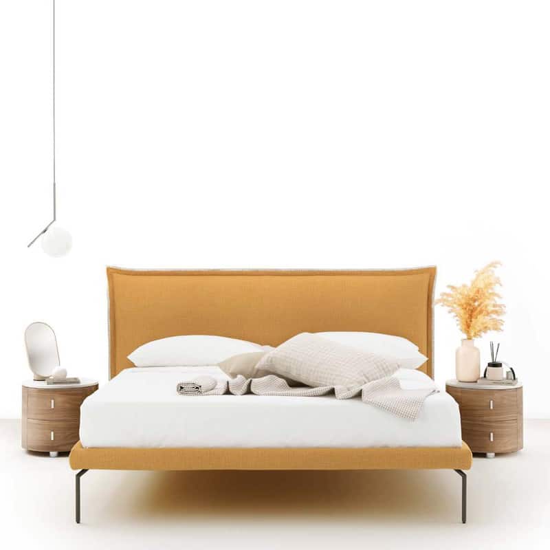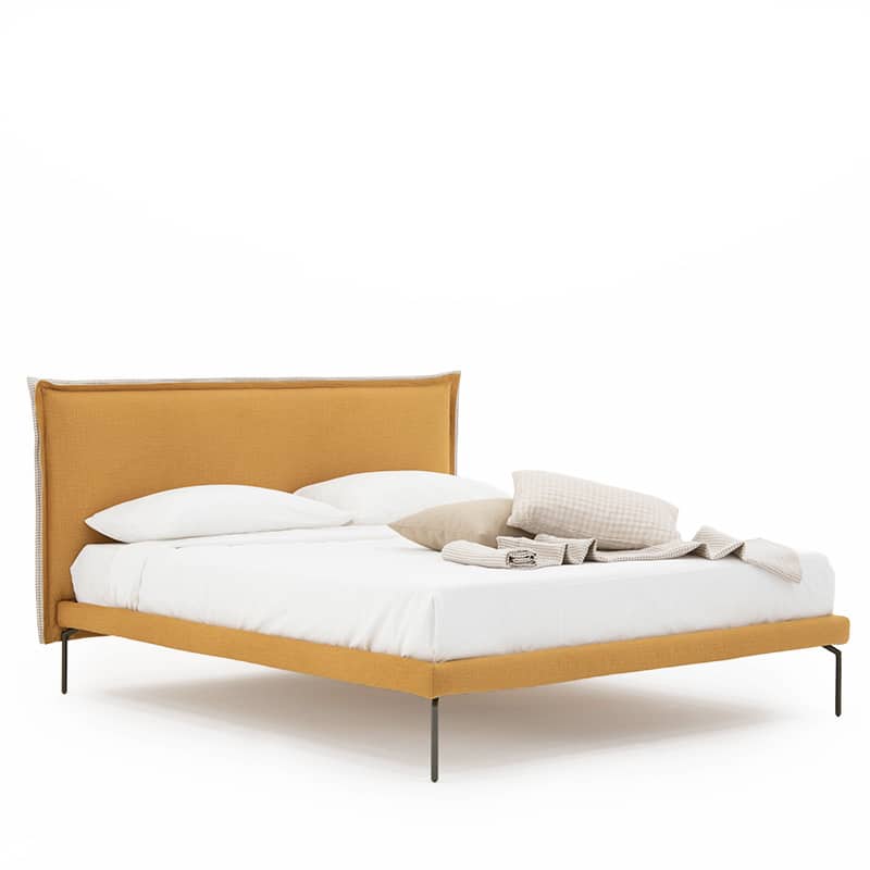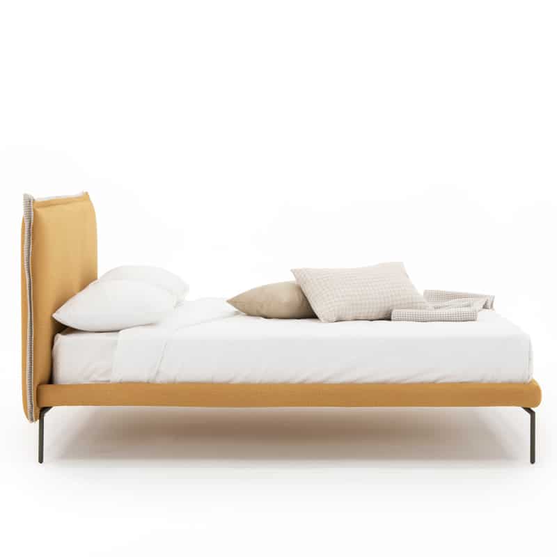 Un decoro semplice, che corre lungo tutto il perimetro della testata, è questo l’elemento distintivo del letto Milo.