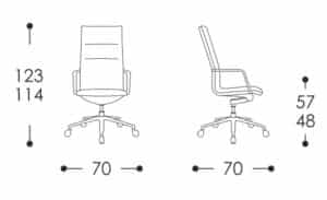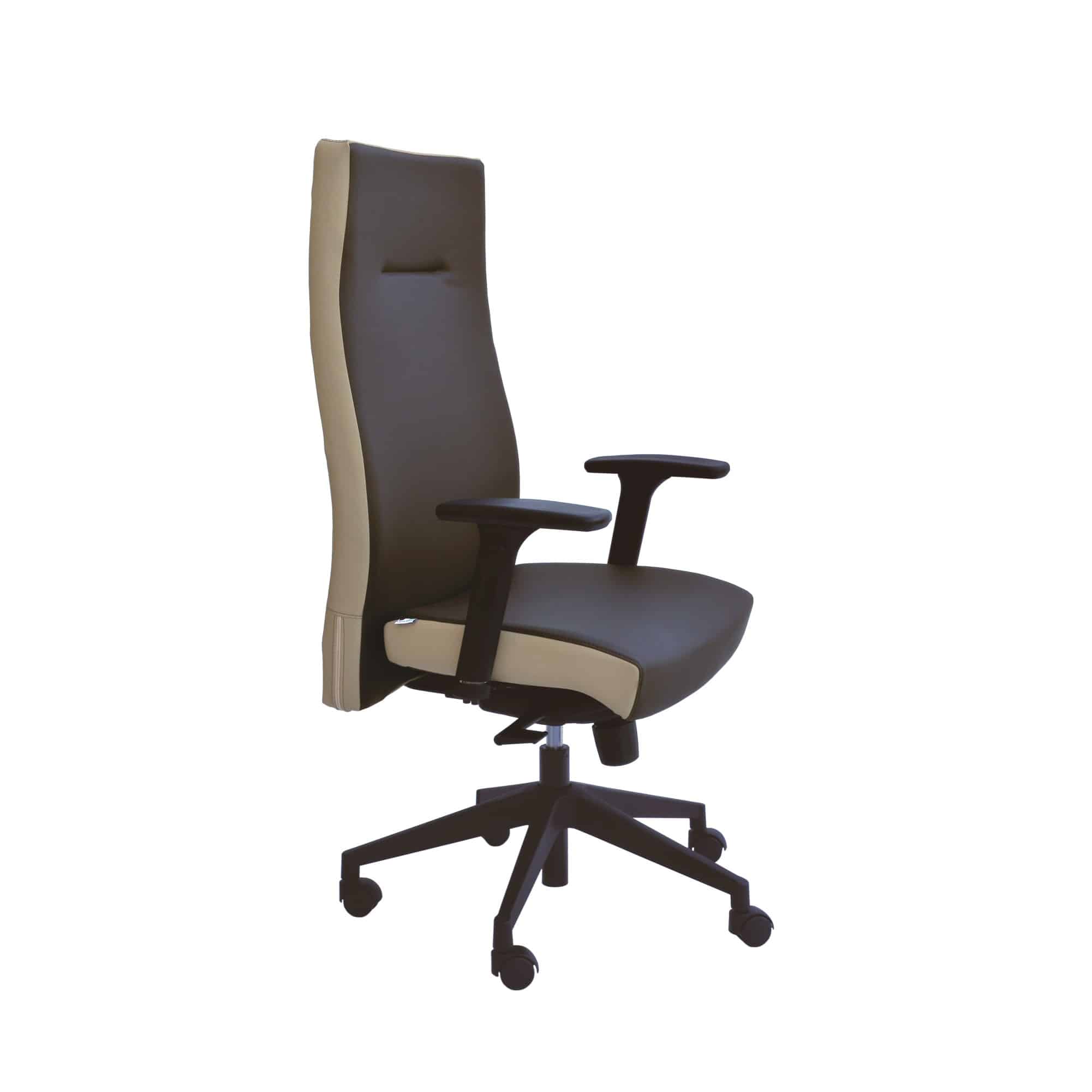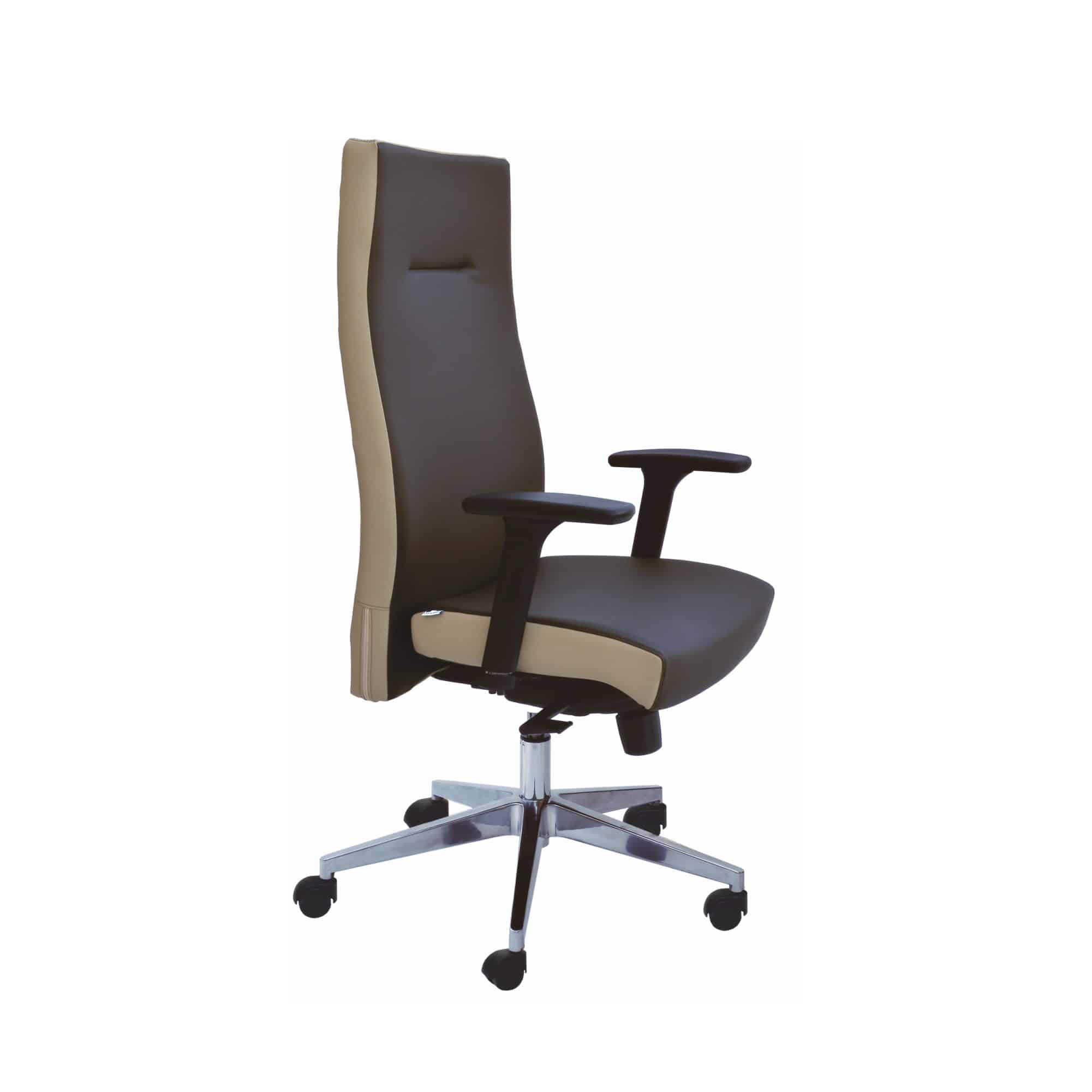 Poltrona direzionale, sedile e schienale in multistrato di pioppo e faggio mm. 12, imbottitura del sedile e dello schienale sono in poliuretano espanso di altissima densità, braccioli 3d regolabili in altezza, profondità e orientabili, in nylon antiurto con anima in acciaio cromato, meccanismo syncronizzato multiblock autoregolante, sistema antishock per evitare il ritorno violento dello schienale, regolazione dell’altezza per mezzo di pompa a gas, base 5 razze in nylon o in alluminio pressofuso spazzolato, ruote gommate con doppio battistrada.