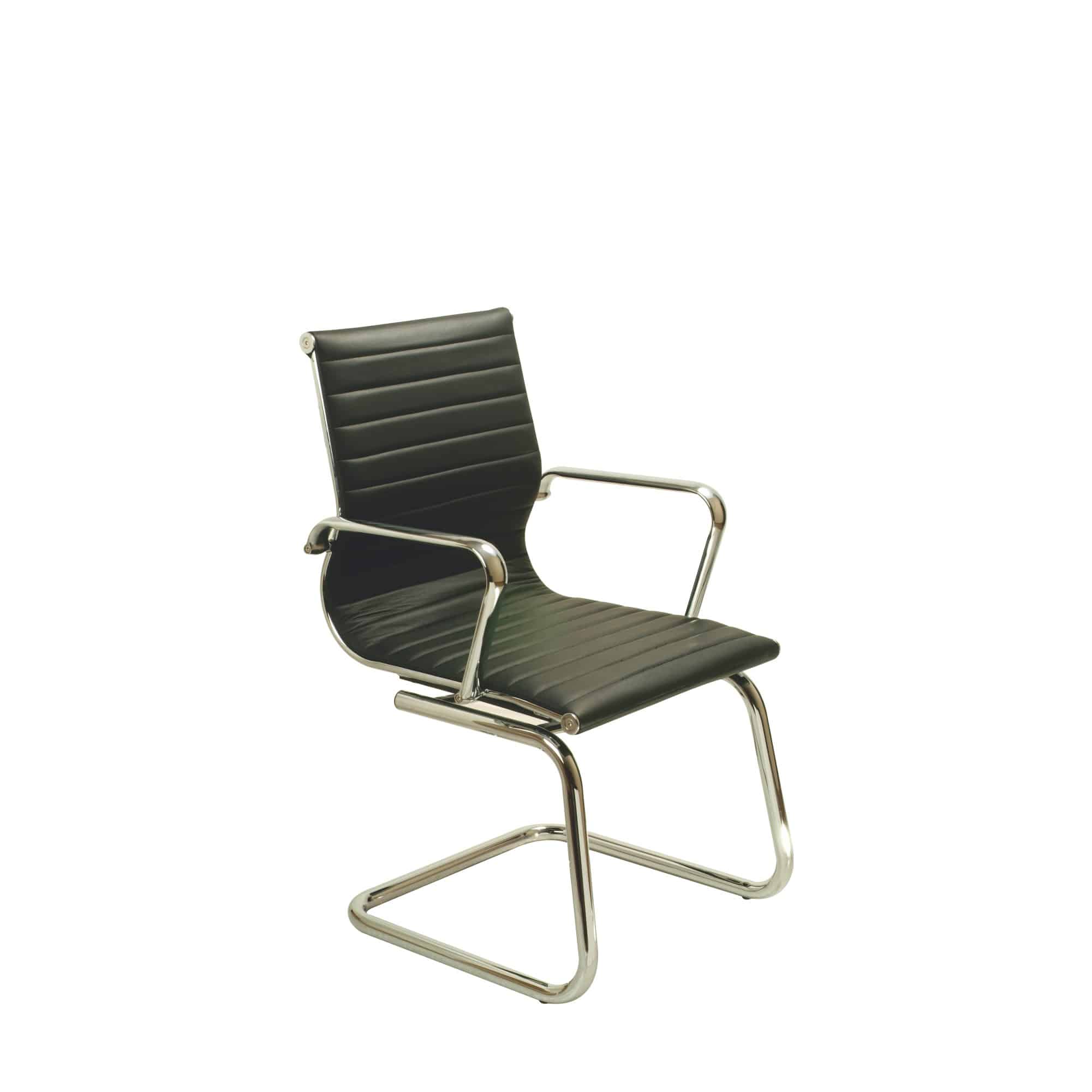 Sedia con base a slitta in acciaio cromato o con basamento a 5 razze.