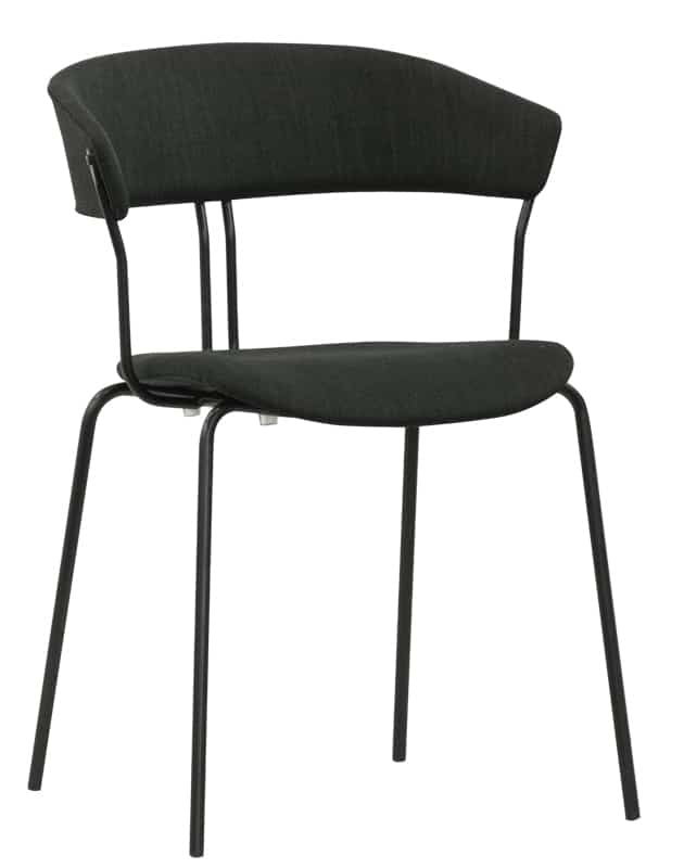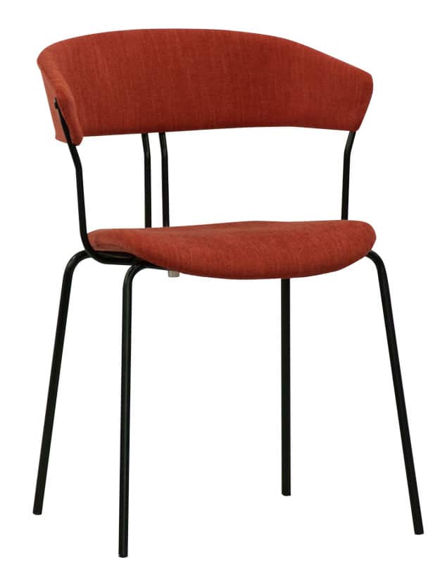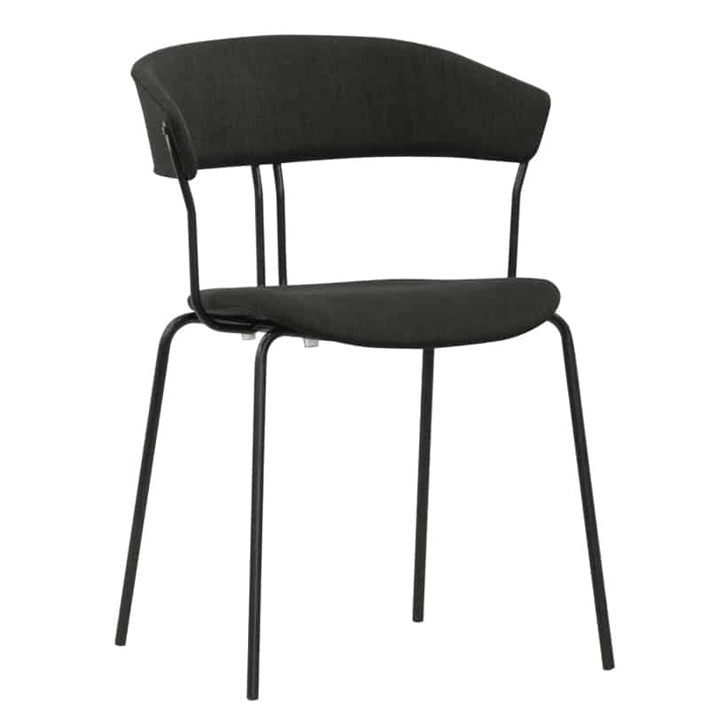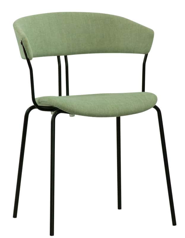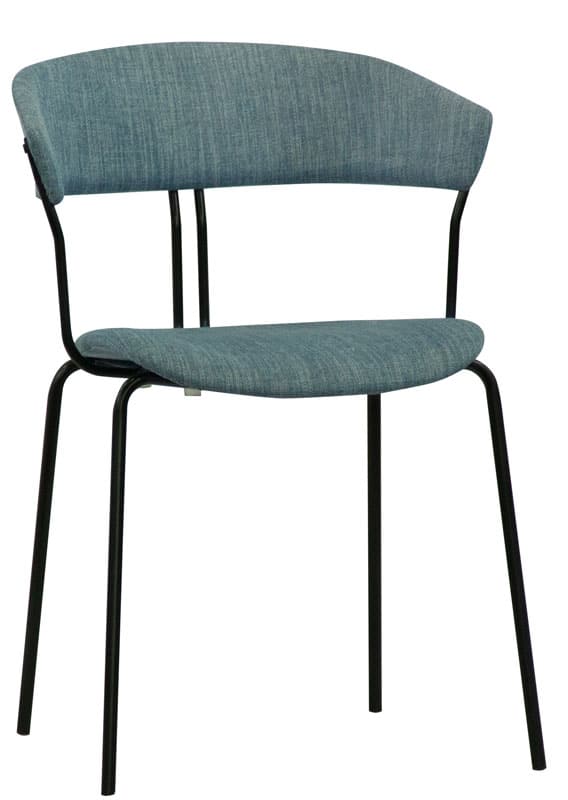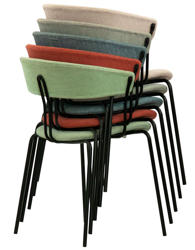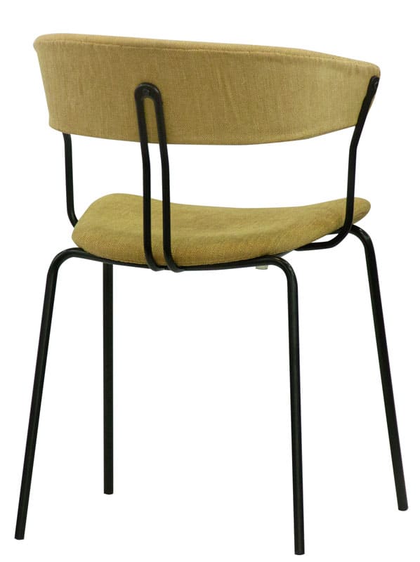Struttura in metallo verniciato, seduta e schienale in tessuto.