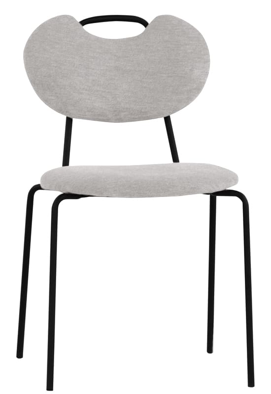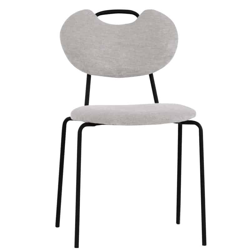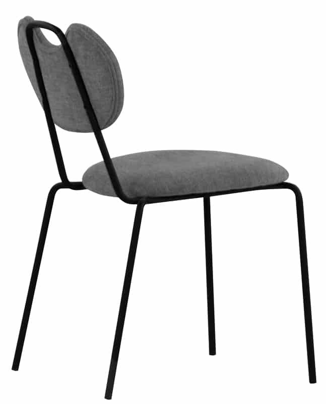 Struttura in metallo verniciato, seduta e schienale in tessuto.