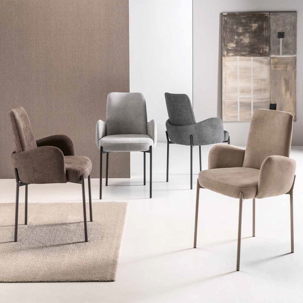 Sedia imbottita in ecopelle con struttura in metallo. Disponibile in diversi colori.