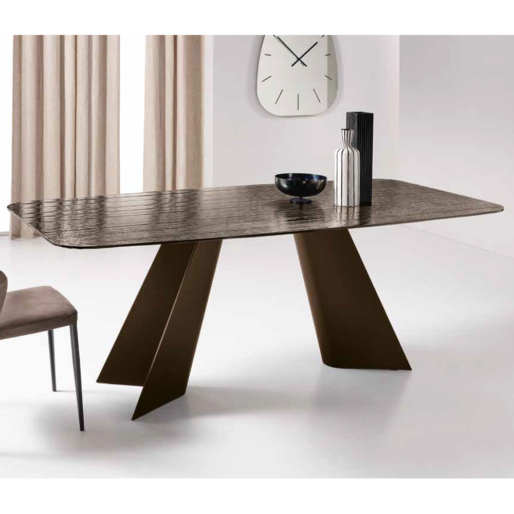 | Finitura piano tavolo | VETRO RIGATO BRONZO RETROARGENTATO, VETRO RIGATO FUME' RETROARGENTATO |